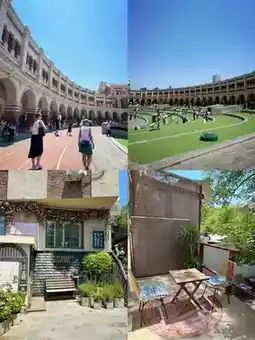 🏟️we then biked to five Great Avenues - 五大道 wodadao. Feels a bit like French concession in Shanghai. We found a cozy cafe here and had some ice coffee in the sun.