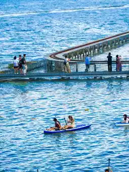 Enjoy seaside rides ➠ Ride the seaside mini train ➠ Sip coffee at 23M Café ➠ Watch the sunset on the rainbow walkway ➠ Catch the light show on the ocean-view boardwalk ➠ Join the beach music and beer festival