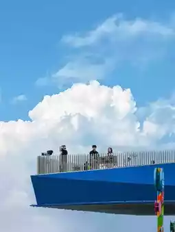 The rainbow walkway on the top floor offers a panoramic view of Dongjiang Port