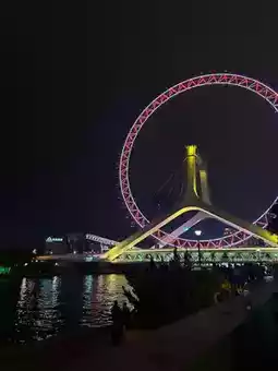 • 🌆 Modern skylines, Ferris wheel on a bridge (Tianjin Eye, no joke)