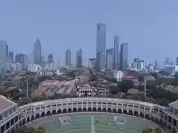 - Aerial highlight: Symmetrical composition of the cluster of international buildings