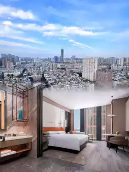 The rooms are spacious with large desks and ergonomic chairs, so working overtime won’t be tiring. The 2-meter-wide bed is super comfortable, with a mattress of just the right firmness and pillows available in soft, medium, and firm options. The bathroom features a dry-wet separation, a large vanity, and a makeup mirror, catering well to business travelers and women alike.