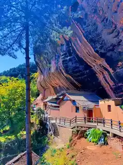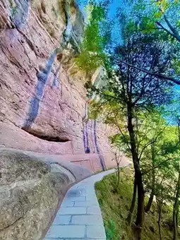 The Danxia landform blends with Buddhist and Taoist temples. When the sun sets, the golden light shines on the cliff walls, making it an excellent spot for photography!