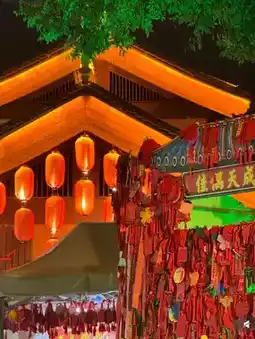 Evenings are magical here — red lanterns glow, the air smells of fresh street snacks, and the whole town feels like it’s whispering stories from centuries past.