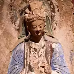 As you climb the winding walkways carved into the mountain, each cave reveals a new masterpiece — painted Bodhisattvas, celestial beings, and monks, all surrounded by intricate details that bring the rock walls to life 🎨🙏. The sunlight filtering through the cliffs enhances every hue, making the grottoes feel alive with history and devotion 🌄.