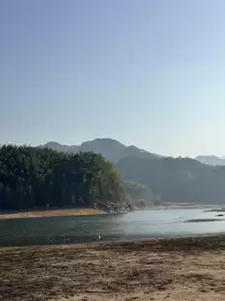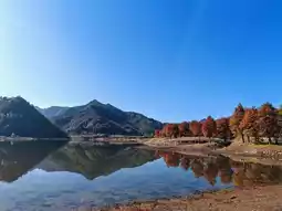 The gem-like blue lake is surrounded by lush green mountains. The mountains and water are interdependent, and every glance is a masterpiece of nature. The lake is wide and calm, reflecting the blue sky and white clouds, like a huge mirror.