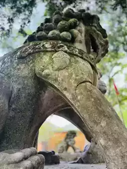 Gaoming Lecture Temple required a winding mountain drive, and there were almost no tourists. We arrived just in time for the noon vegetarian meal—20 RMB per ticket, straight to the dining hall.