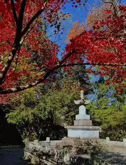 ✔️ Zhizhe Pagoda Courtyard: The ancestral temple of the Tiantai Sect hidden in the mountains, housing the flesh pagoda of Master Zhizhe. The entrance is framed by red maples like rosy clouds, and inside the courtyard, four ancient plum trees stand strong and aged, evoking thoughts of the winter plum fragrance.