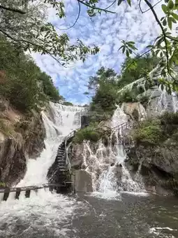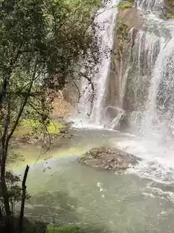 This trip, we focused solely on enjoying the Grand Waterfall and did not head towards Qiongtai Fairy Valley. From the entrance of the Tiantai Mountain Grand Waterfall Scenic Area, we climbed up along the waterside plank road, and after passing the first, second, and third waterfalls, we started descending. On the mountain, we were lucky to see a colorful gecko, and while descending near the No. 2 viewing platform at the "Rainbow Waterfall," we even captured a rainbow 🥰🥰🥰.
