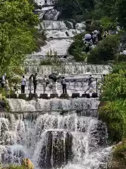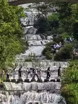 Although the Tiantai Mountain Grand Waterfall is an artificial attraction, created by a cross-basin water diversion project that recycles water between reservoirs, its grandeur is in no way inferior to natural waterfalls. The Grand Waterfall consists of nine cascading waterfalls, each with its own unique features.