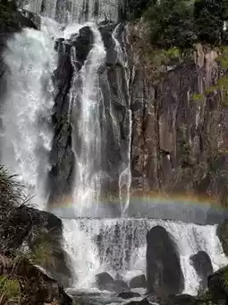 ▪️ 2:00 PM at Tiantai Grand Waterfall to shoot the "Rainbow Water Curtain Cave"! Social post caption: "Tyndall effect straight from the original photo"