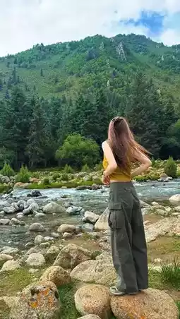 ◦ Stream Symphony: Use a slow shutter (1/15 second) to shoot silky water flow downstream of the waterfall. Have the subject sit on a rock with flowing water in the foreground to highlight the balance of motion and tranquility.