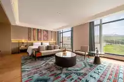I was amazed as soon as I entered! The prayer wheel lamps and Thangka paintings in the lobby set the perfect atmosphere. The rooms perfectly blend Tibetan elements with smart technology—voice-controlled curtains and lights are super cool, and the smart toilet even has a heating function! My favorite is the humidifying aroma diffuser; in the dry northwest weather, it keeps your skin hydrated~ The bedding feels so soft, like sleeping on clouds☁️