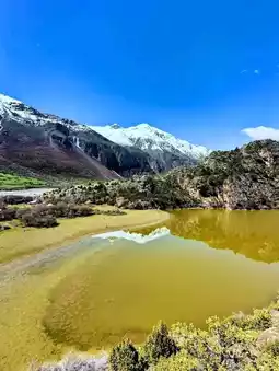 The area around the lake is gorgeous too, with wildflowers, tall grass, and mountains in the background making it a perfect photo spot. Not a ton of tourists, which means you get to enjoy the calm and quiet without the crowds.