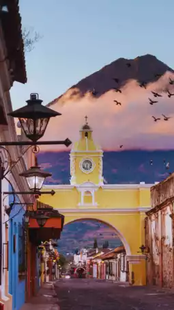 🏛️ Antigua Guatemala: A small town filled with colonial charm, cobblestone streets, old churches, and pastel-colored buildings surrounded by volcanoes. Antigua is more than just an old city, it’s the heart of Guatemalan culture. Here, you can sample local coffee, see handicrafts, and learn to dance salsa in a warm and vibrant atmosphere.