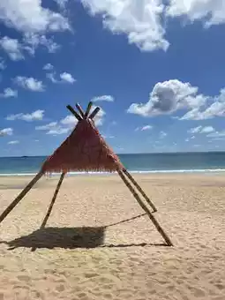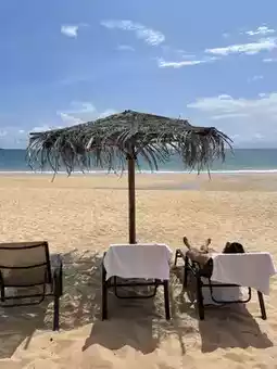 The beachfront here is stunning: powdery white sand, crystal-clear waters that sparkle under the sun, and a horizon that seems endless. Morning swims feel refreshing, while afternoons are best spent stretched out under the shade with a book or simply watching the tide roll in.