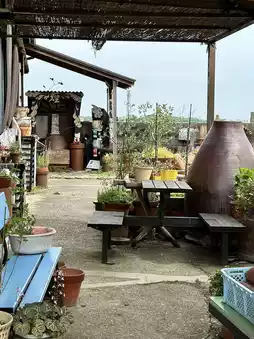and there are kilns, brick chimneys, and slopes piled with shochu bottles...there is a charming landscape unique to a pottery town.