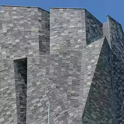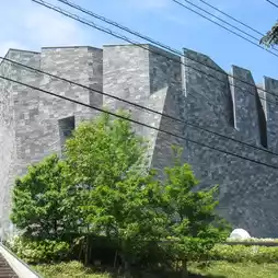 The building, covered in gray granite that evokes the nature of Musashino, is like a giant rock towering from the earth.
