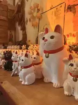 Located in Bunka no Mori, a cultural hub featuring museums, art galleries, and libraries, the shrine can be reached by climbing a set of stairs. The main deity worshipped here is Amaterasu's third son, Amatsuhiko Hikoho Ninigi no Mikoto, commonly referred to as "Neko God" due to the phonetic similarity of "neko" (cat) in Japanese. He is known as the God of Oaths in Japanese mythology. Inside the worship hall, you'll find numerous lucky cat figurines left by visitors as tokens of gratitude, along with cat treats and food. The walls are adorned with ema (wooden prayer plaques) and lucky cat decorations.