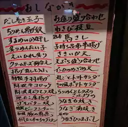The drink lineup includes local sake from Tokushima as well as sake and shochu from all over the country.