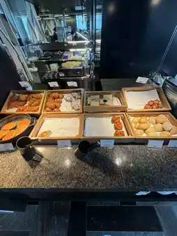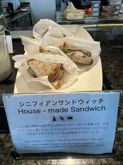 ・A buffet with a wide variety of dishes, including the specialty “Snow Crab Omelette,” soy sauce ramen, and sandwiches made with yeast