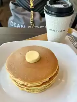 I ordered pancakes and hot tea. The maple syrup and butter were well combined and really tasty😋