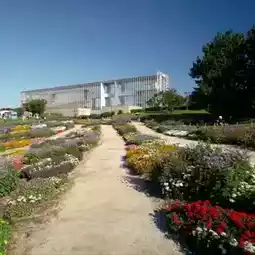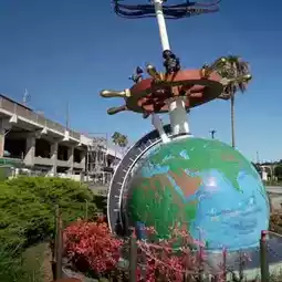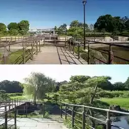 A huge park with lush greenery. The park also has a Ferris wheel, and different flowers bloom under the Ferris wheel depending on the season.