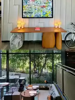 The Jones, the on-site coffee bar, offers all-day dining, from morning coffee to evening craft beer, creating a New York-style gathering atmosphere. District restaurant on the second floor serves brunch and charcoal-grilled seafood dinners, and the outdoor terrace is an ideal place for a drink.