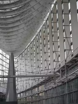 The overall shape of the Tokyo Forum reminds me of a dirigible or the inside of a whale, with the beams as the architectural ribs.