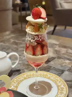The Hudson Lounge on the first floor of the InterContinental Tokyo Bay is offering strawberry-themed pancakes and parfaits for a limited time.