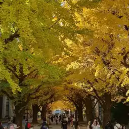 The symbol of Tokyo University, the most famous university in Japan, is the ginkgo tree, and there are many ginkgo trees and ginkgo paths on campus, and they show off their yellow colors every fall to welcome autumn.