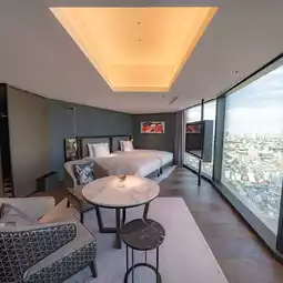 Japanese culture is woven into the interior design of the guest rooms, and the 7-meter-wide windows offer a magnificent panorama of Tokyo