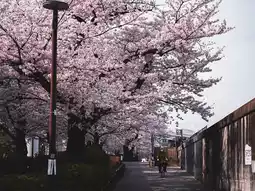 The rows of cherry trees along the river are beautiful, like a pink tunnel when in full bloom, and are the perfect place to enjoy a stroll😊.