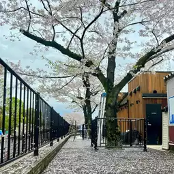 Today, Mui will take friends to travel in Japan. After sleeping for 1 night, in the morning, I woke up and went for a run at Sumida park Asakusa. You can start from the hotel. It's not far away. In the cool 5 degree weather, there are many people who come to run in the beautiful place. The sun is out, so it's not too cold. The park is now in April. When I arrived, the cherry blossoms were blooming on both sides of the road. There were a lot of cherry blossoms blooming. It's very beautiful. It's fun to look at. Coming in the morning is great because when you finish running, in the late morning, when you get on the subway, there are a lot of people taking pictures.