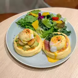 The café's bright and cozy atmosphere makes it the perfect place to relax and enjoy a meal.