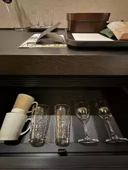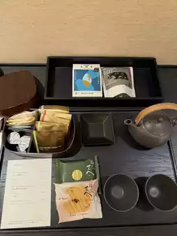 Additionally, there was the familiar Nespresso, tea varieties, and some snacks on the side table.