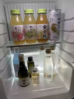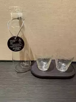 There are no distributed plastic bottles, but the room has a water purifier and a bottle to fill water, so you won't have any trouble with hydration!