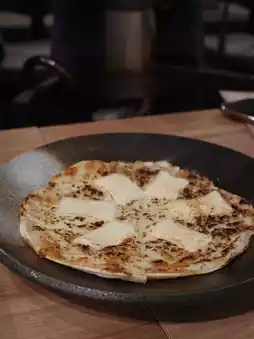 The grilled marbled wagyu beef and Dassai sake lees pizza are brought to the table and then grilled over a burner, so you can enjoy the live feeling unfolding right in front of you.