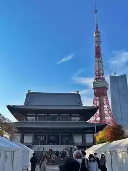 Start at Zojoji Temple. The highlight is the pagoda with Tokyo Tower as a backdrop. It is beautiful in a classic Japanese style.