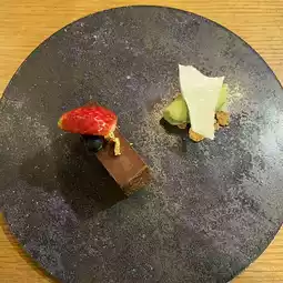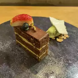 Dessert was a delicious moist chocolate cake and pistachio ice cream🍰