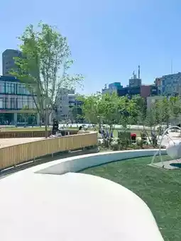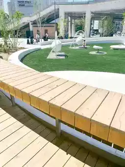 The park features a wide lawn called "Hope Square" and an "Inclusive Square" with playground equipment that everyone can enjoy.