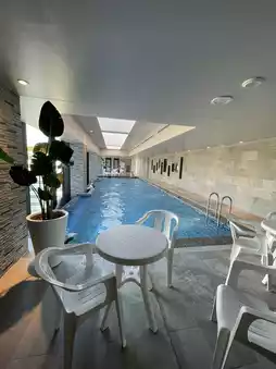 The hotel rooms have the atmosphere of a normal, clean business hotel, but the building has a gym where you can train while enjoying the night view, an indoor pool, and other facilities☺️💖