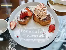 I tried the strawberry French toast and a cup of tea, and I was not disappointed. The French toast was fluffy, perfectly sweet, and generously topped with fresh strawberries. The tea complemented it well, providing a comforting balance to the sweetness.