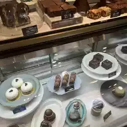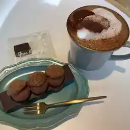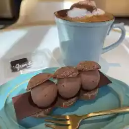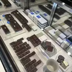 This popular chocolate specialty shop allows you to purchase chocolates made in-store, and you can also eat in at the cafe. The shop is larger than I expected, with tables near the entrance and large tables in the back🩵