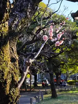Shiba Park's plum garden was already a famous scenic spot during the Edo period. In early spring in Tokyo, before the cherry blossoms bloom, a stroll beneath Tokyo Tower may lead to a delightful surprise encounter with the vibrant plum blossoms of Shiba Park. Red, white, pink, and winter-sweet blossoms adorn the trees, creating a scene of vibrant beauty. The gnarled and ancient trees, with their moss-covered trunks, resemble old beauties with youthful charm. They complement the stone bridges and towering ancient trees, remnants of ancient temples, creating a picturesque scene. In an instant, you'll be transported from the modern metropolis to the elegance of ancient Japan.
