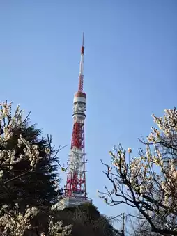 It's said that the cherry blossom season offers the most beautiful views of Tokyo Tower from this angle. However, you can avoid the peak season crowds and experience the unique beauty of Tokyo Tower during the plum blossom season.
