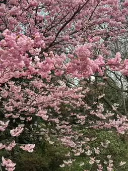 The cherry trees in front of me are tall and dense, the branches of the weeping cherry trees hang down like waterfalls, and the pale pink flowers of the Somei Yoshino cherry trees look particularly soft in the sun. Every time the wind blows, it brings a rain of petals, making people unable to help but reach out their hands to catch these falling elves.