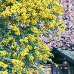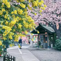 Kuramae Shrine is not large in scale, but it is a great place to enjoy flowers in spring. Every spring, this place becomes the stage for Kawazu cherry blossoms and acacia flowers. When the Kawazu cherry blossoms are in full bloom, the pale pink petals spread out freely, like pieces of falling gauze, which is extremely romantic. The acacia flowers are not to be outdone. Their golden pompom flowers sway on the branches, emitting a bright and warm glow. The two are intertwined, and the gold and pink collide with each other, forming a beautiful spring scene.
