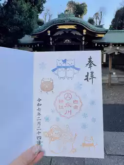 Introducing "Shirokane Hikawa Shrine" where you can get a different monthly goshuin every year and the mascot cat is super cute 🤍!!
