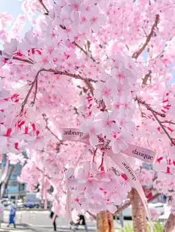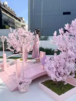 The pop-up store, decorated with cherry blossoms, pink ribbons and bridges, is a very photogenic and cute space that expresses the world of "dasique" 🌸
